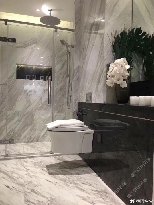 以大理石的天然肌理,雕琢衛浴的奢雅格調。維納斯白的純凈底色,交織著金灰紋路的藝術韻律,從墻面延伸至地面,每一處鋪貼都是對精致生活的注解。在這一方空間里,大理石的冷冽質感與空間的溫馨氛圍碰撞,既顯高級感,又藏煙火氣,讓衛浴時光成為一場視覺與感官的雙重奢享。